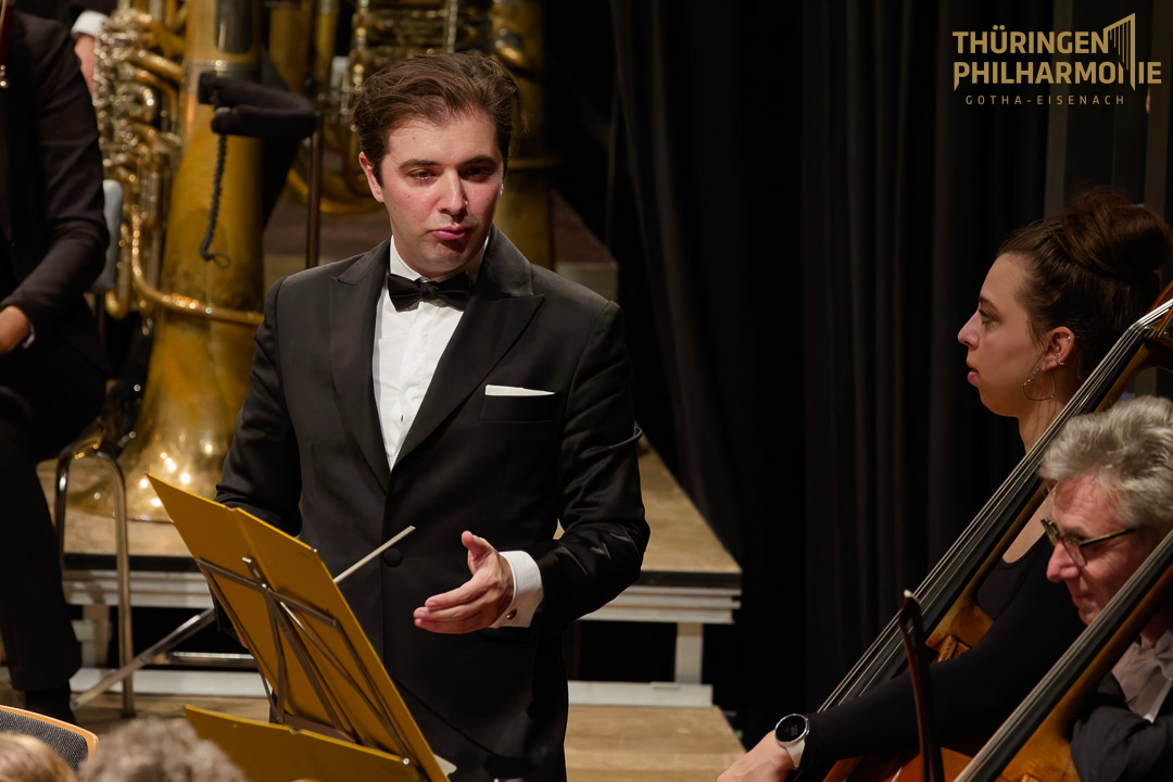 Geleitet wurde unser Orchester diesmal von Dionysis Grammenos, der kurzfristig für Chefdirigent Markus Huber einspringen musste. Er entführte nach der Pause in die Vielfalt des Dreivierteltakts mit Kompositionen, die viel mit Gotha zu tun hatten. Wer alles dies genau wissen will, braucht nur das vorzügliche und diesmal ausführliche Programmheft zu lesen, für das unser Konzertdramaturg Markus Guggenberger die Texte beigesteuert hat.